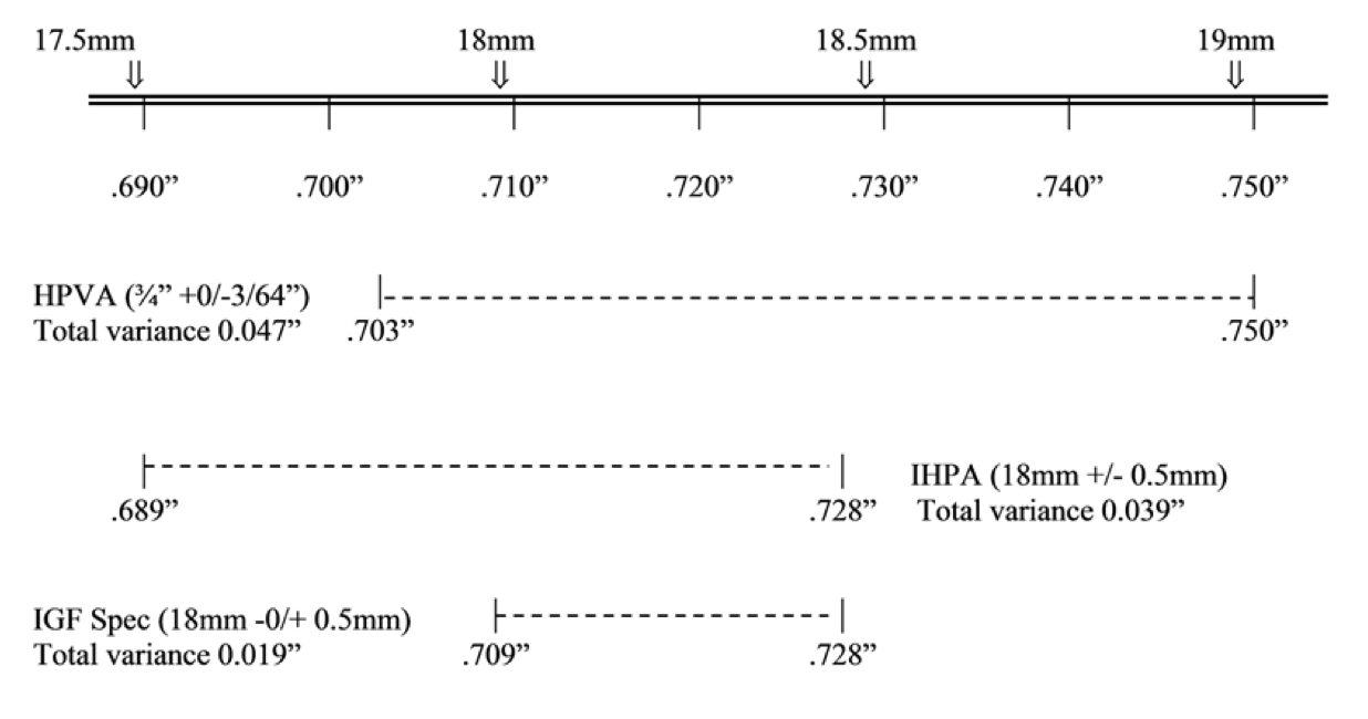 Below is a simple table that shows the thickness variance allowed in HPVA panels (Hardwood Plywood & Veneer Association), IHPA panels (International Hardwood Plywood Association) and IGF spec (our own tighter specification).