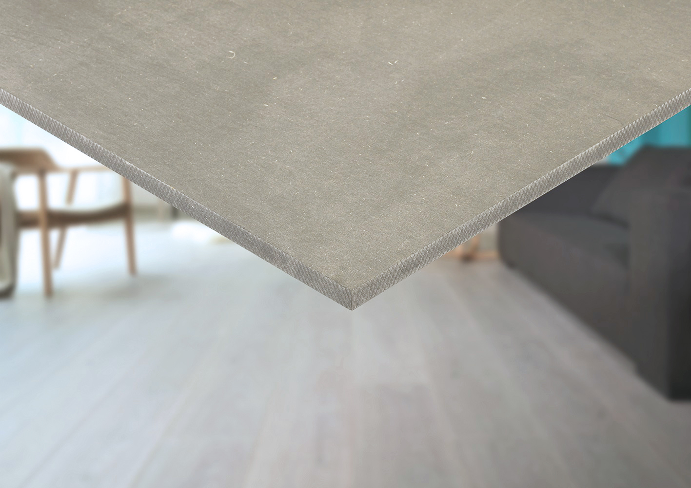 High-density MDF board, coloured grey in the mass with a hard, fine and smoothly sanded surface. The board is subject to minimal expansion and swelling in conditions of high humidity.